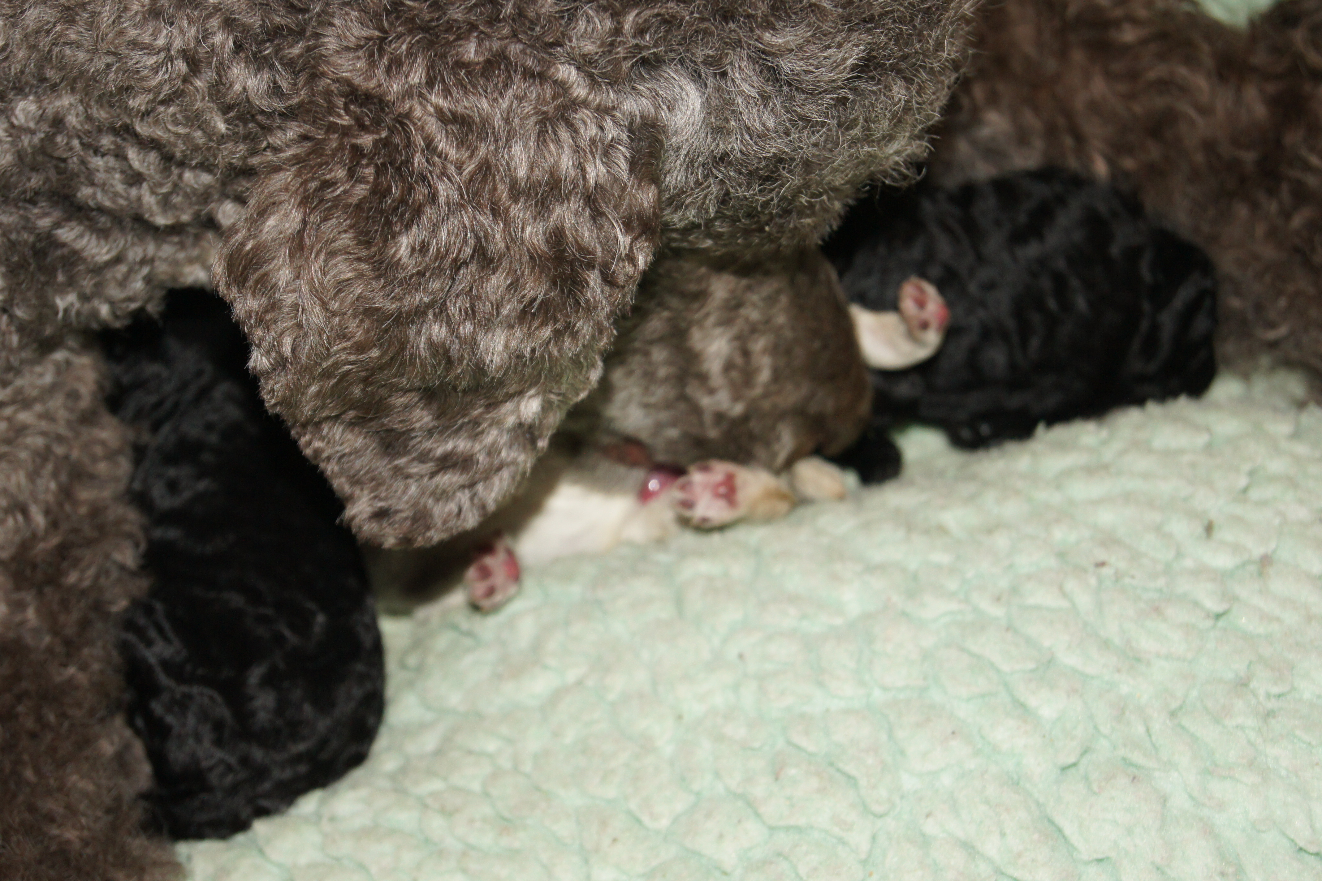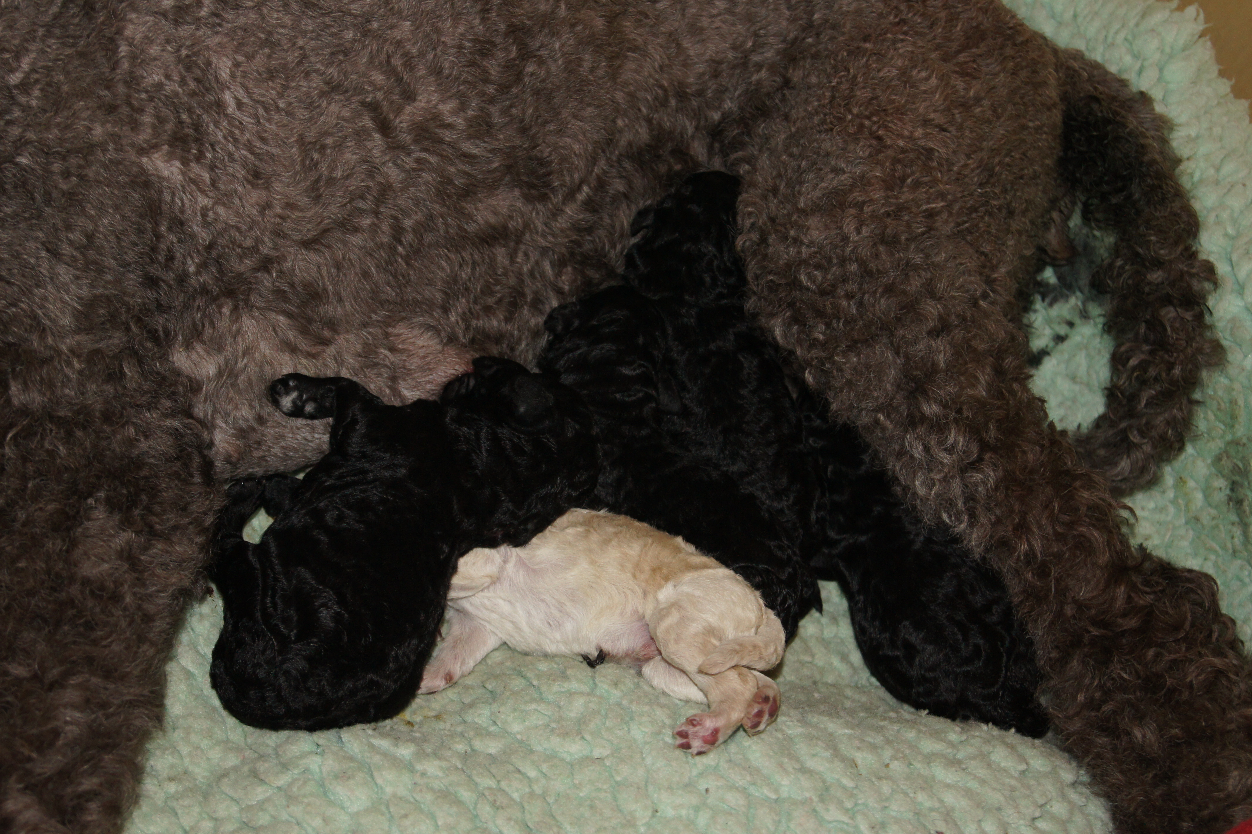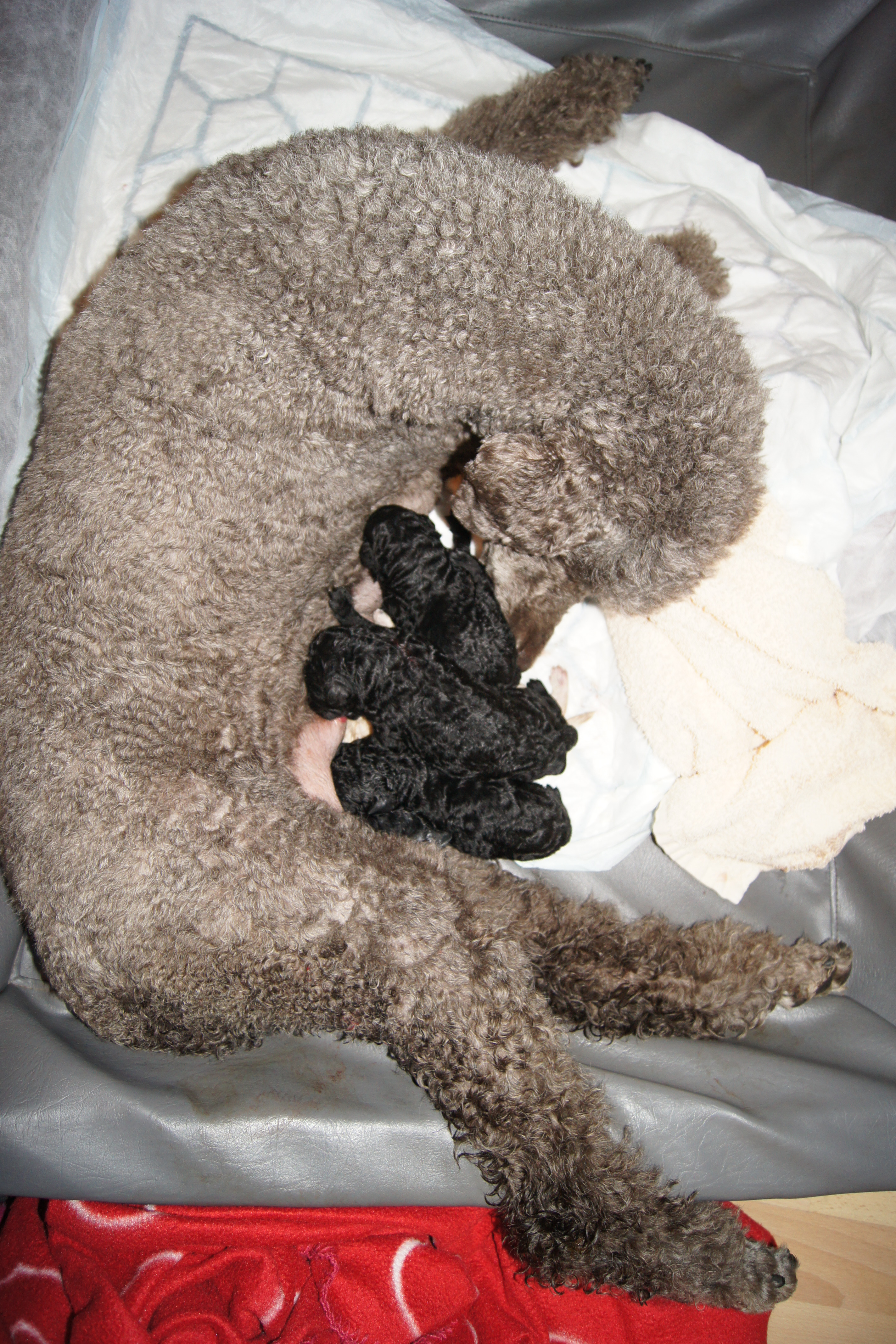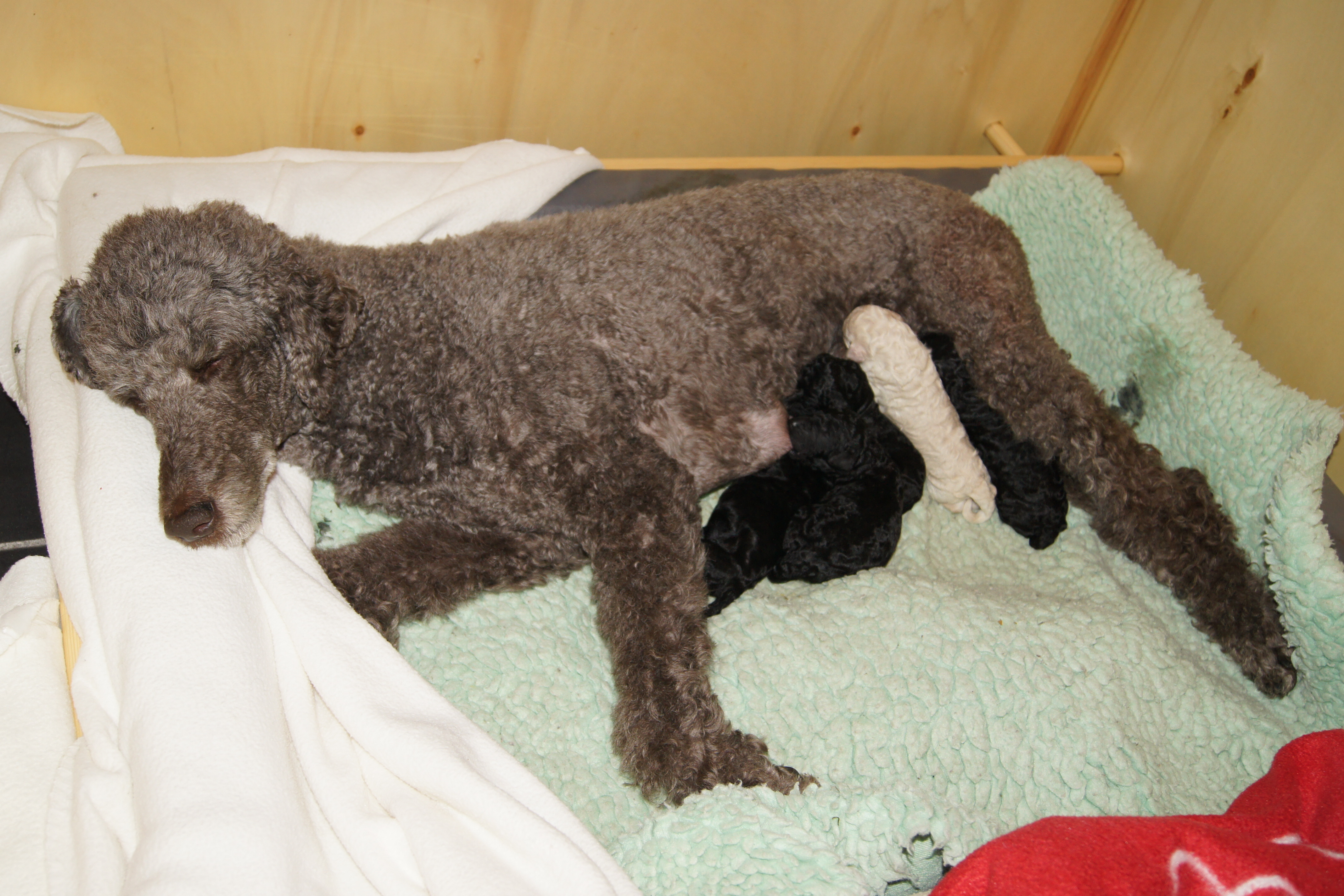Sara fødte 5 valper natt til 12. mai. Det ble 3 sorte hanner, en hvit hann og ei sort tispe.
