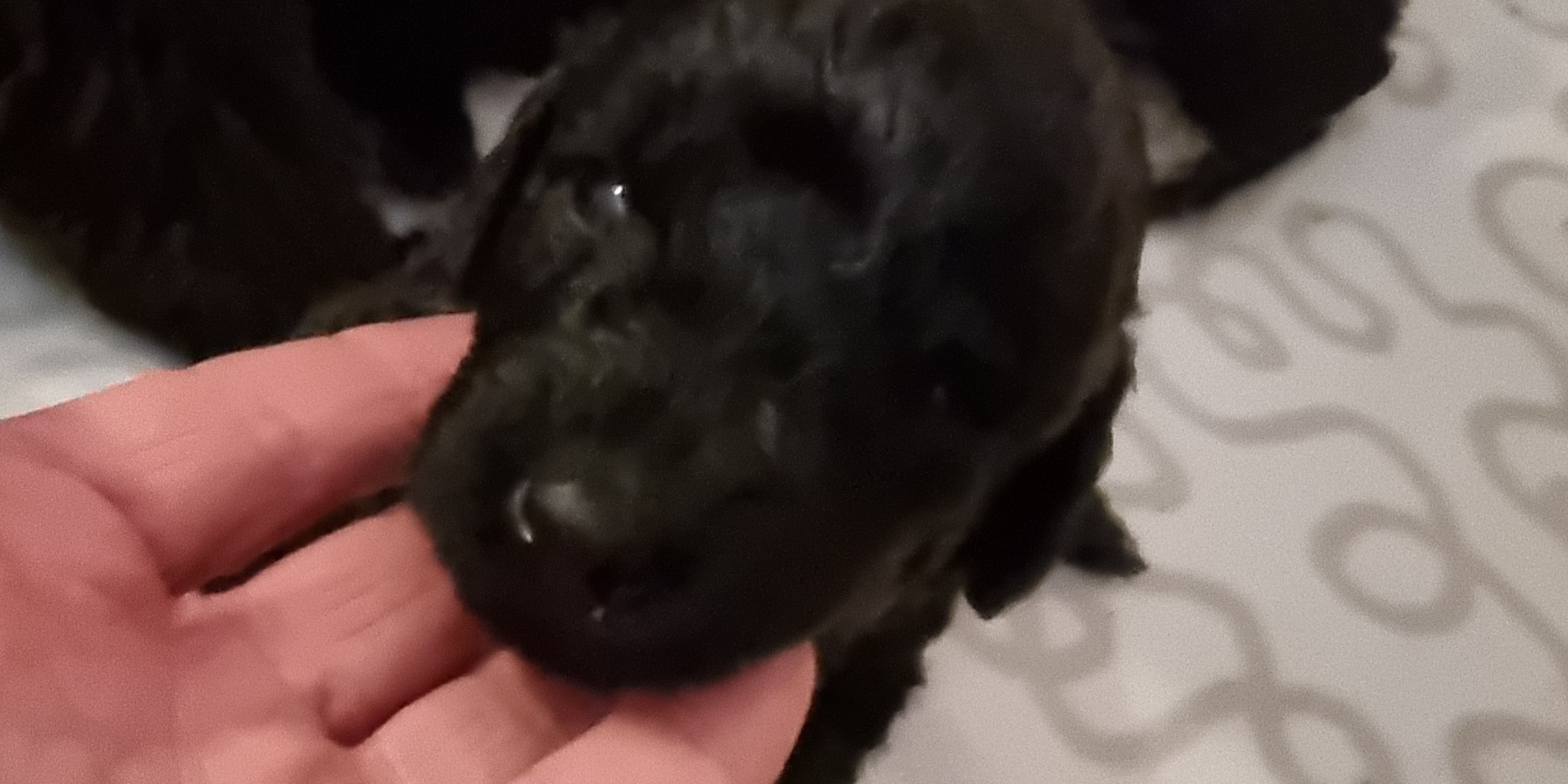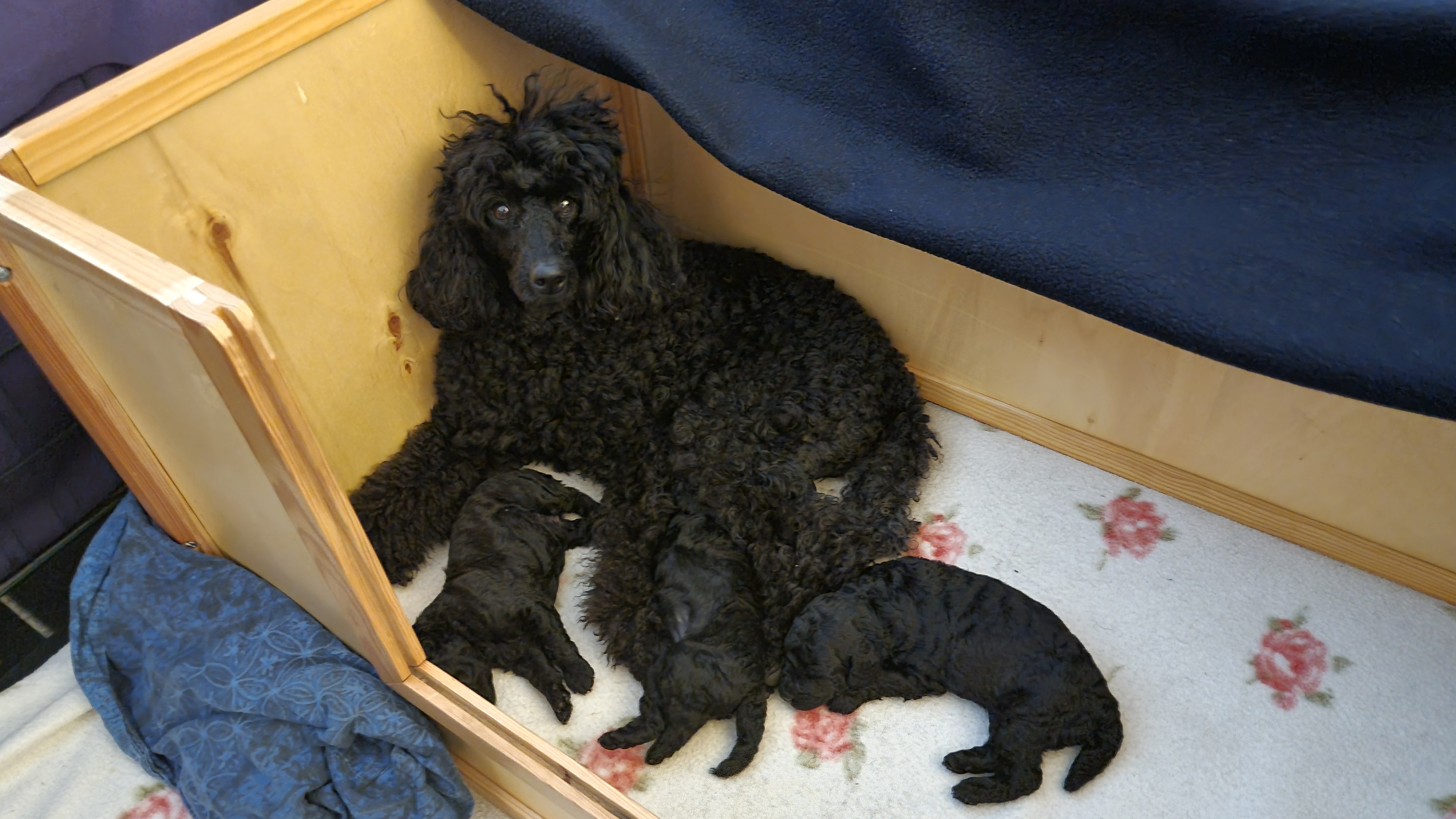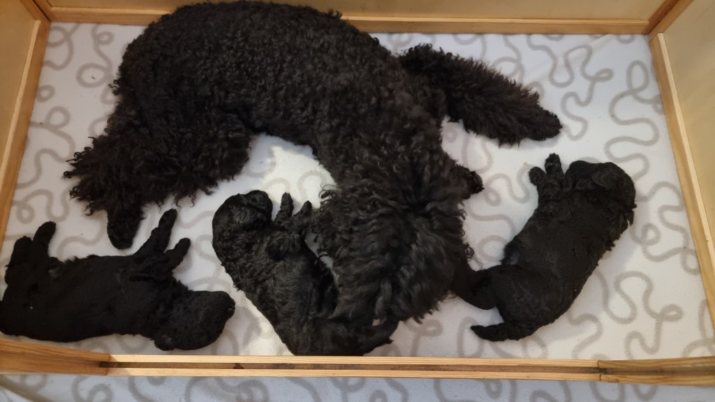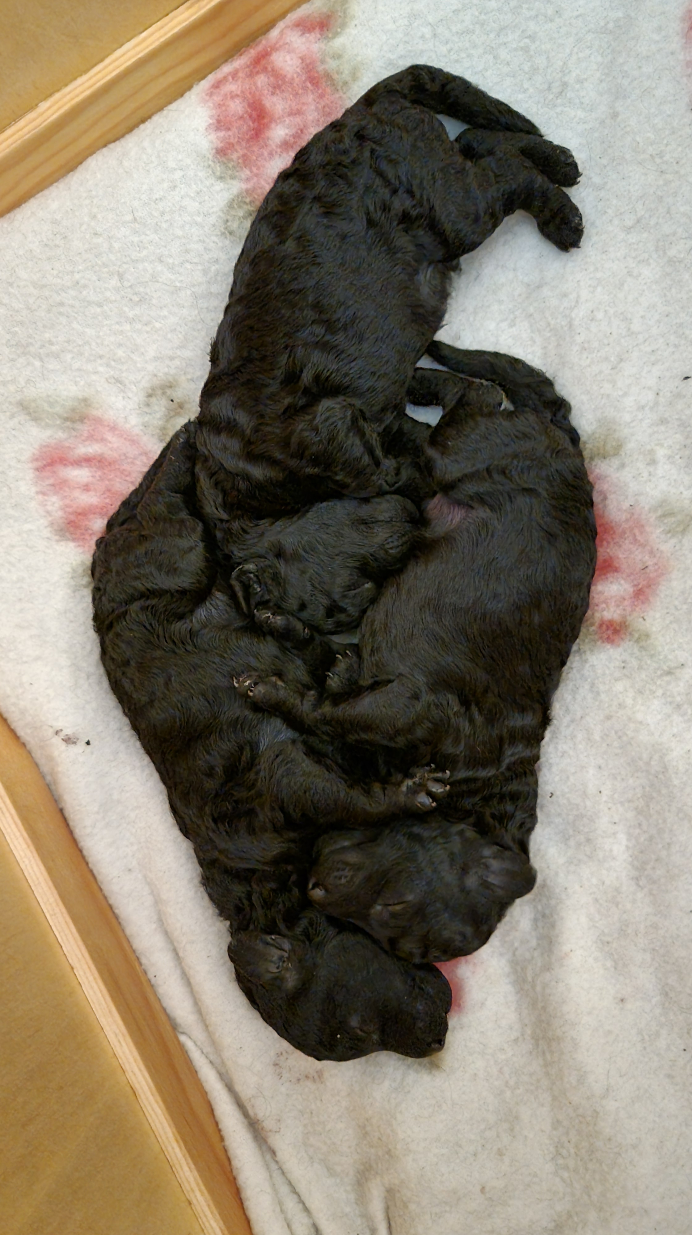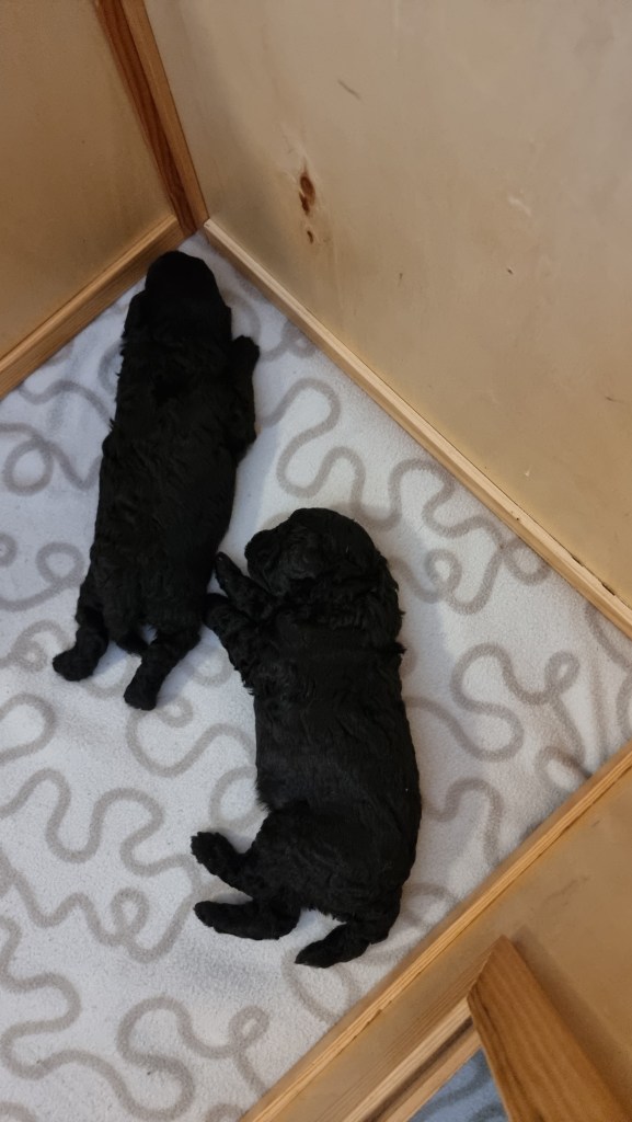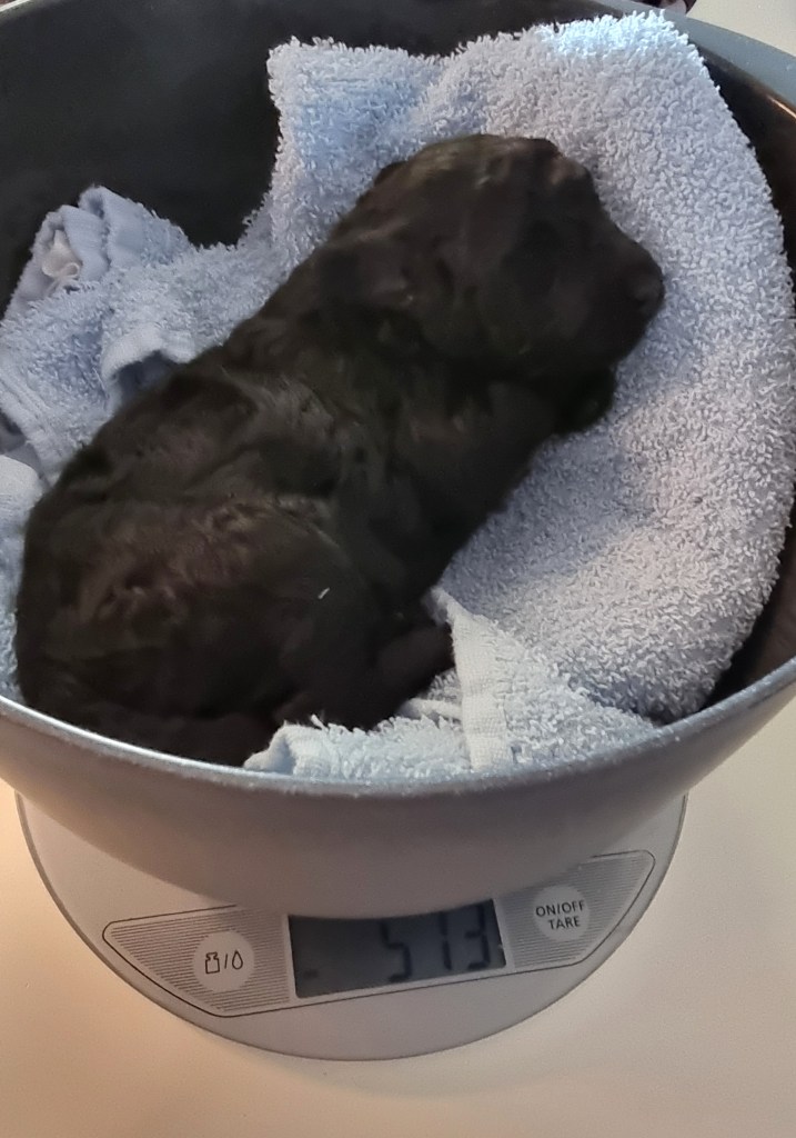 Valpene vokser og trives. Det har ikke vært noen problemer for verken mor eller valper. Valpene doblet vekta første uka og var ca. 800 gr. 14 dager gamle, da ble de veid for å få sin første ormekur.