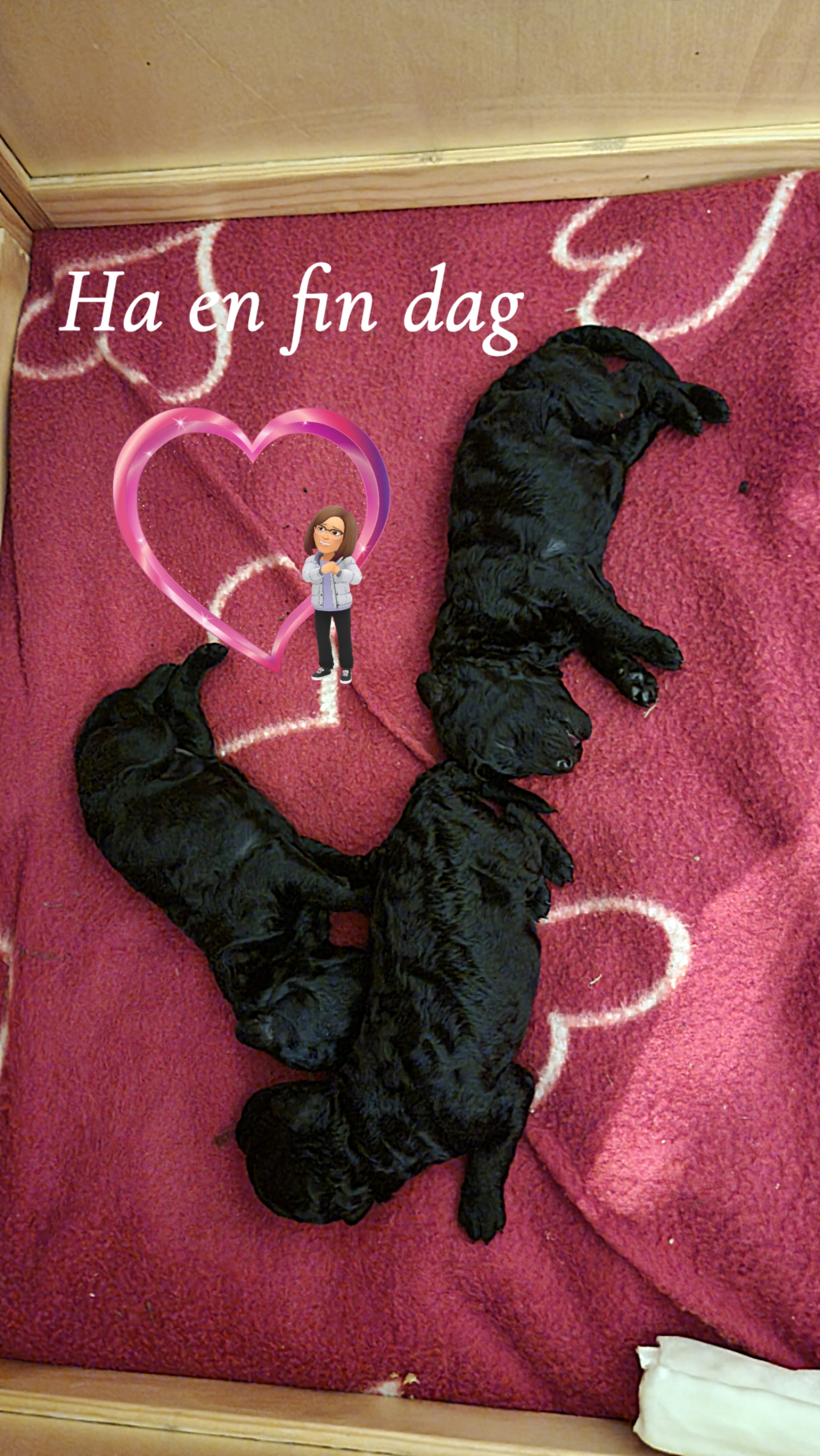 Det ble 3 sorte valper, 2 tisper og 1 hann føst 22. juli 2025. Store og livskraftige valper.