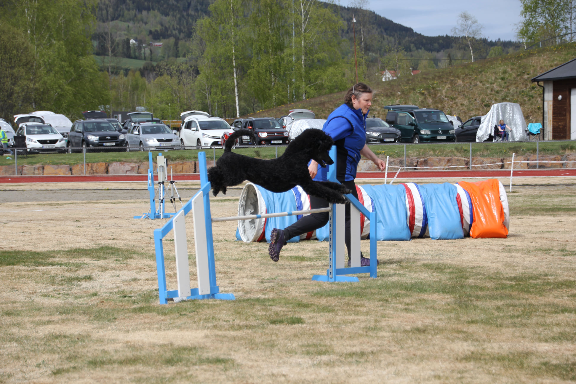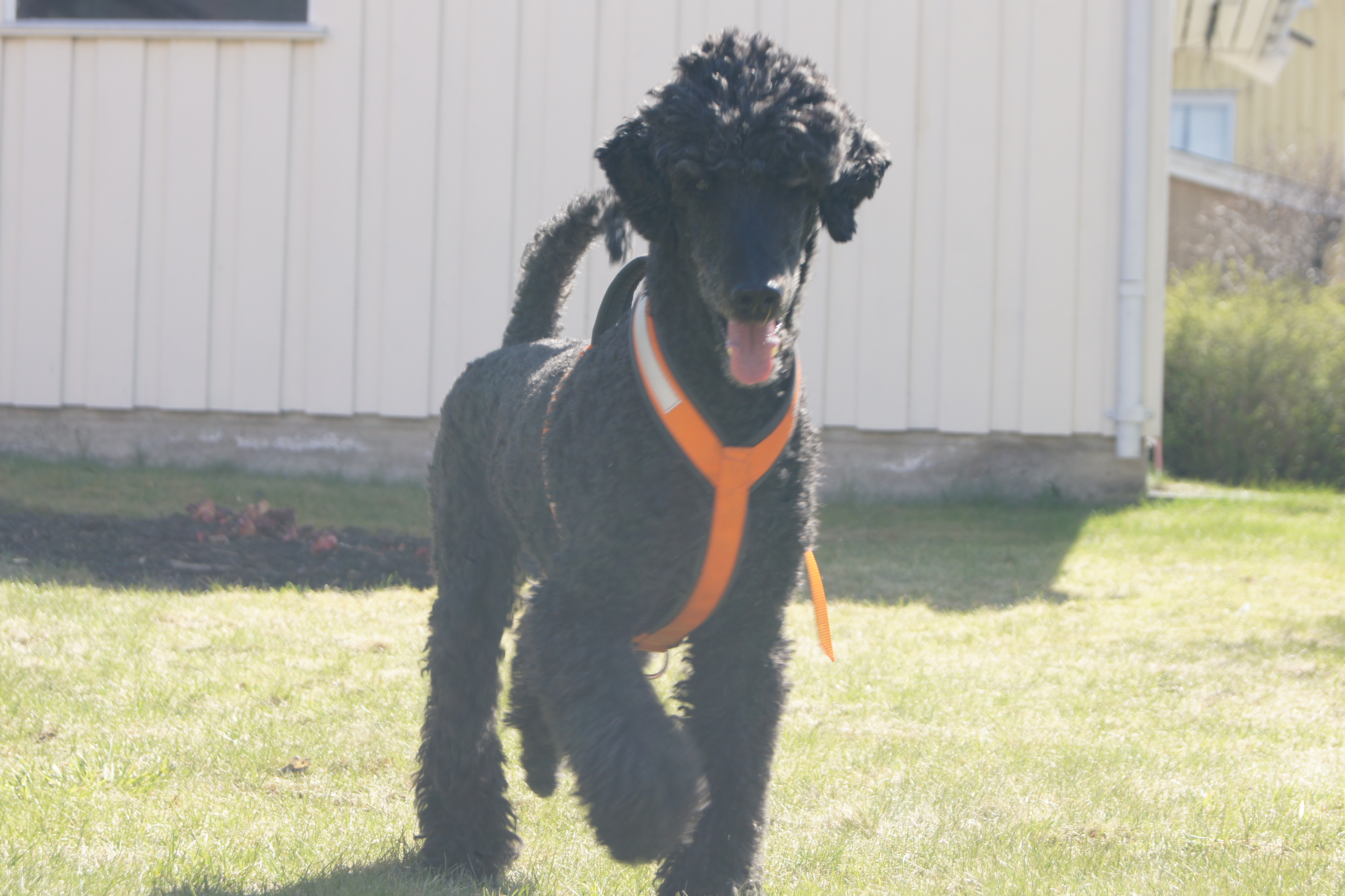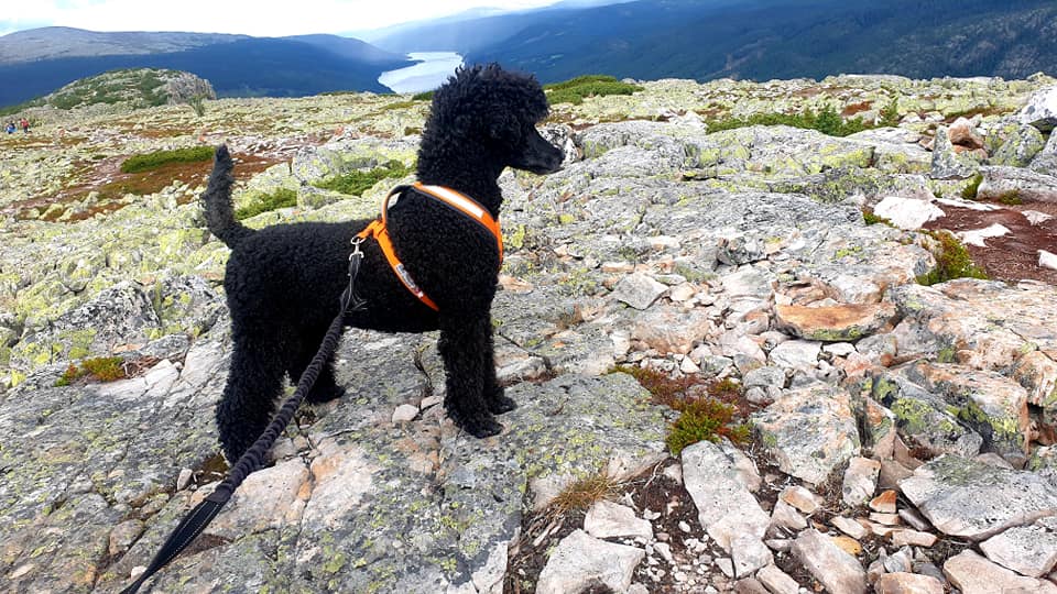Katie er med på det meste; turer i fjellet, sykkelturer, skiturer og agility. Hun har også vært med på utstillinger.